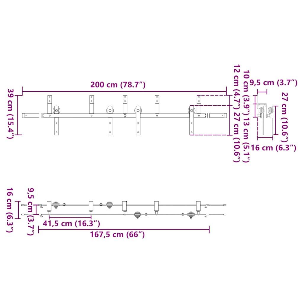 vidaXL vidaXL Schiebetürbeschlag-Set 200 cm Stahl Schwarz