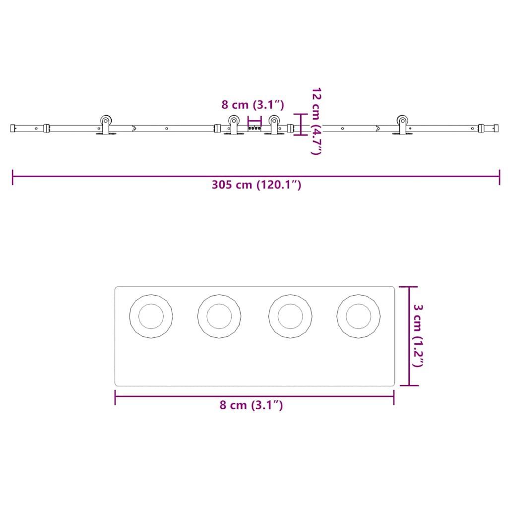 vidaXL vidaXL Schiebetürbeschlag-Set 305 cm Stahl Schwarz