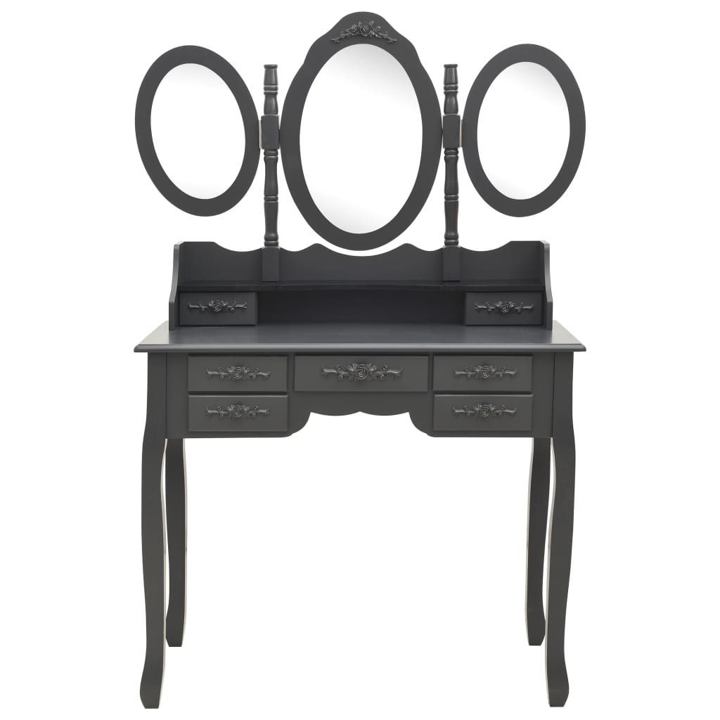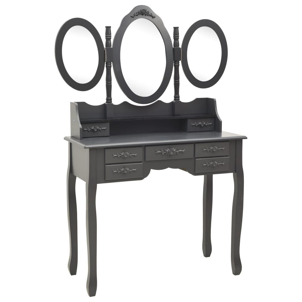vidaXL vidaXL Schminktisch mit Hocker und Dreifach-Spiegel Grau