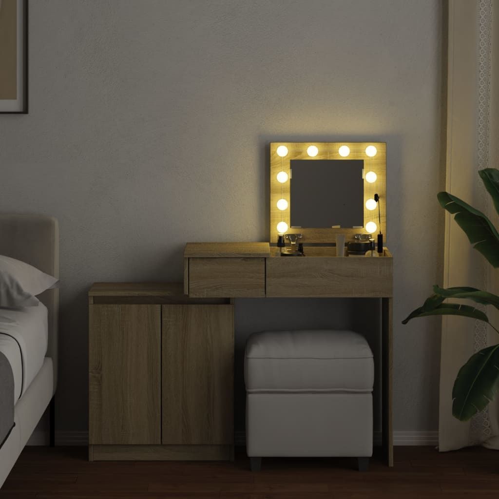vidaXL vidaXL Schminktisch mit LED-Beleuchtung Sonoma-Eiche 115x37x110,5 cm
