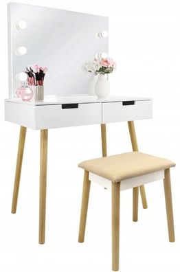 Schminktisch mit LED Beleuchtung Kosmetiktisch Frisiertisch Spiegel Holz Hocker
