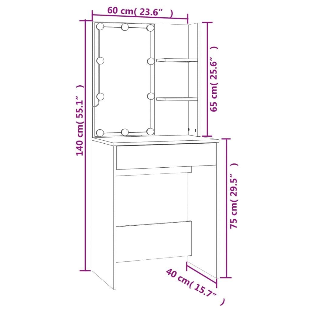 vidaXL vidaXL Schminktisch mit LED Grau Sonoma 60x40x140 cm