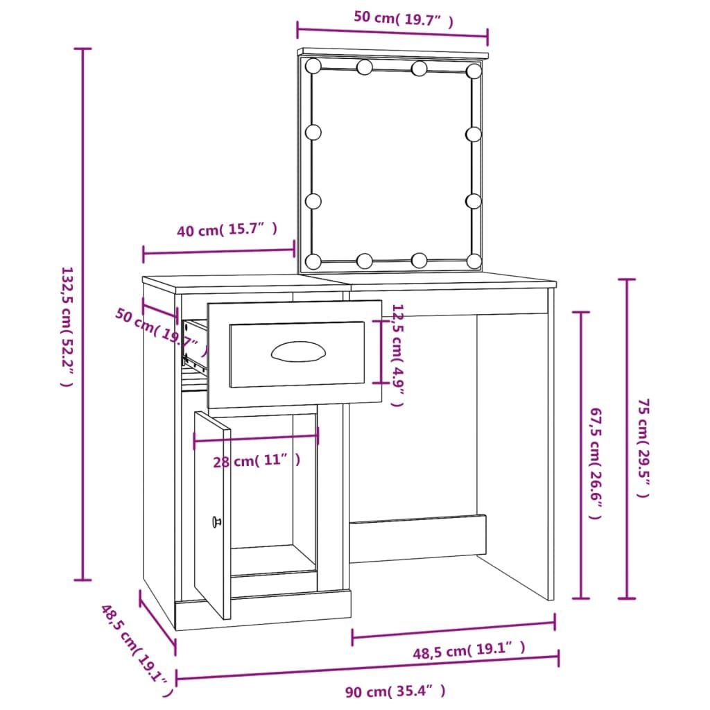 vidaXL vidaXL Schminktisch mit LED Schwarz 90x50x132,5 cm Holzwerkstoff