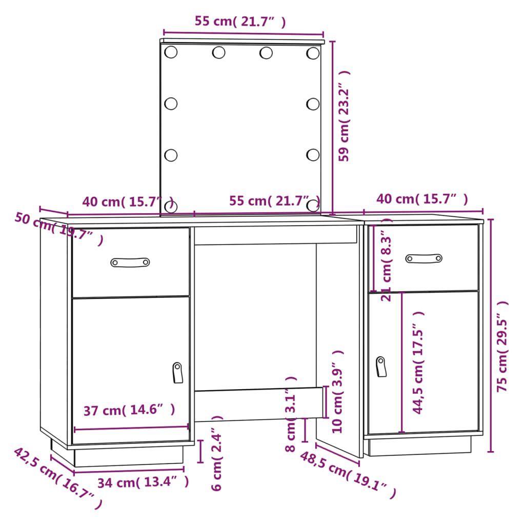 vidaXL vidaXL Schminktisch-Set mit LED Weiß Massivholz Kiefer