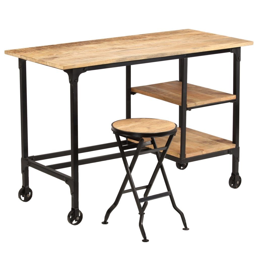 vidaXL vidaXL Schreibtisch mit Klapphocker Mangoholz Massiv 115x50x76 cm