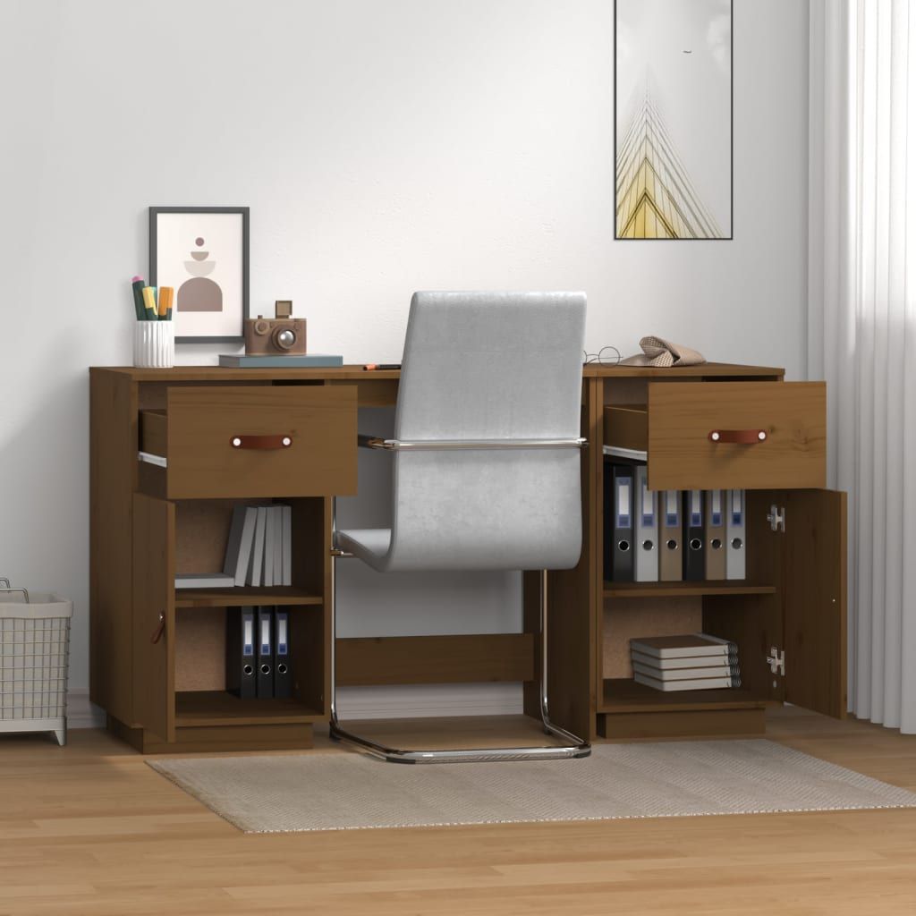 vidaXL vidaXL Schreibtisch mit Schränken Honigbraun 135x50x75 cm Massivholz