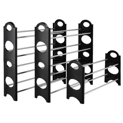 • vidaXL Schuhregal Stapelbar Schwarz Eichen-Optik 89,5x30x40 cm