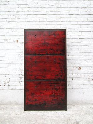 • China praktischer Schuhschrank vier breite Fächer braunrote Pinie Antiklook