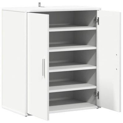 • Zeitloser Schuhschrank aus Holzwerkstoff mit 2 Türen und 5 Ablagen