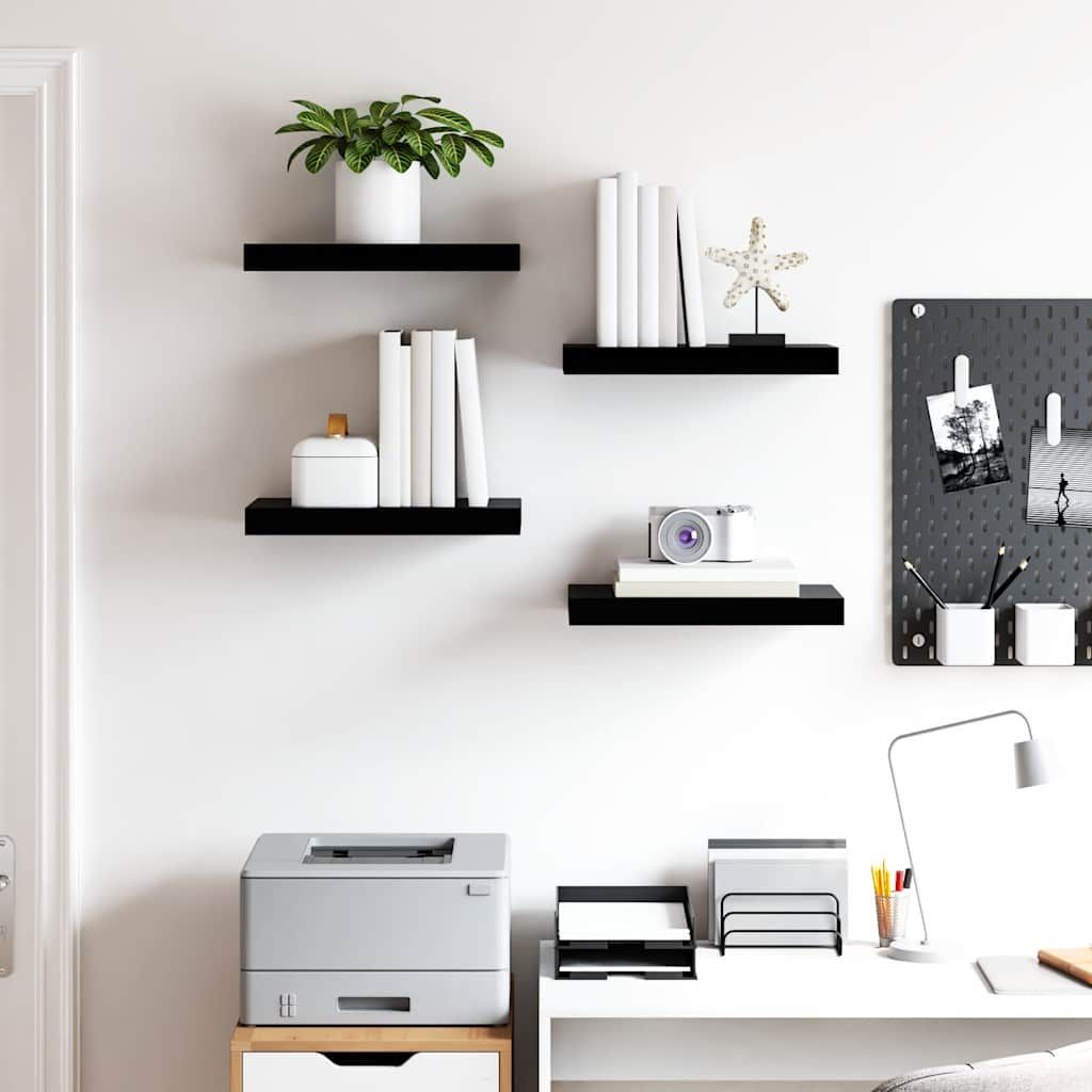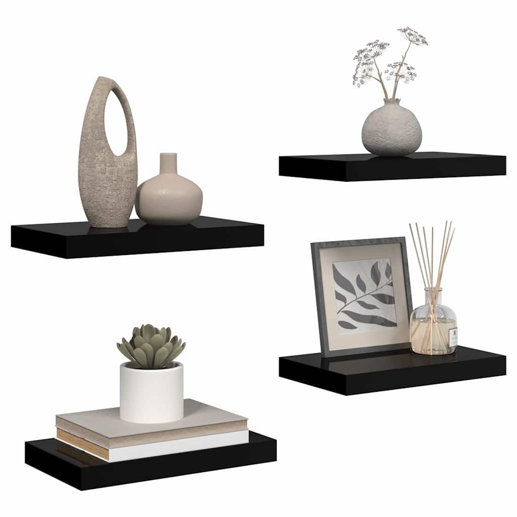 vidaXL vidaXL Schweberegale 4 Stk. Hochglanz-Schwarz 40x23x3,8 cm MDF
