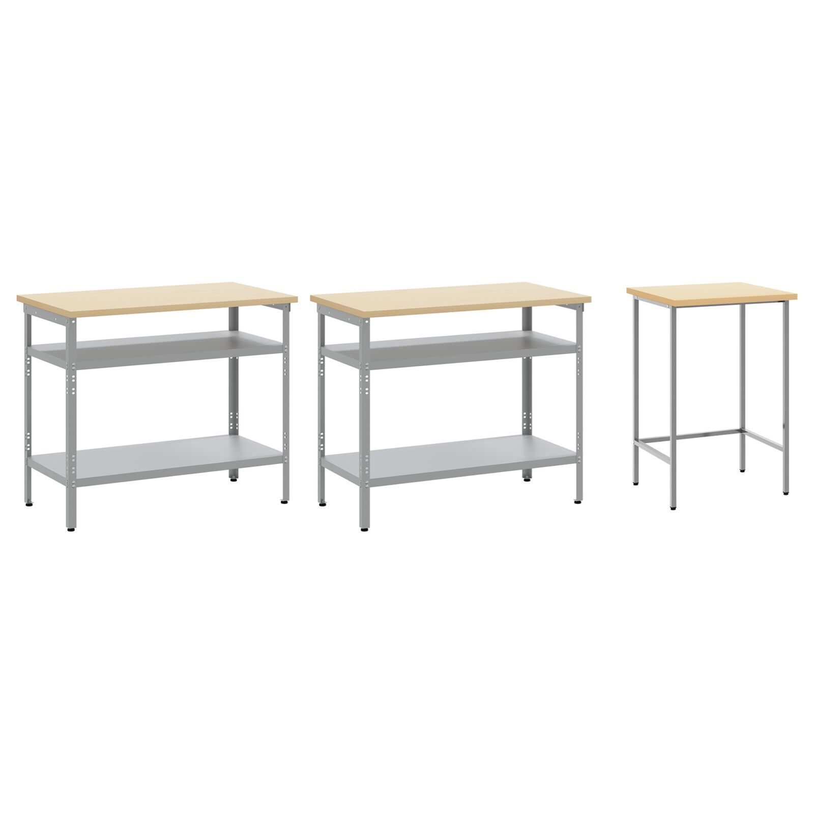 vidaXL vidaXL Set aus 3 Grau Stahl, Holzwerkstoff Mittel Höhenverstellbar