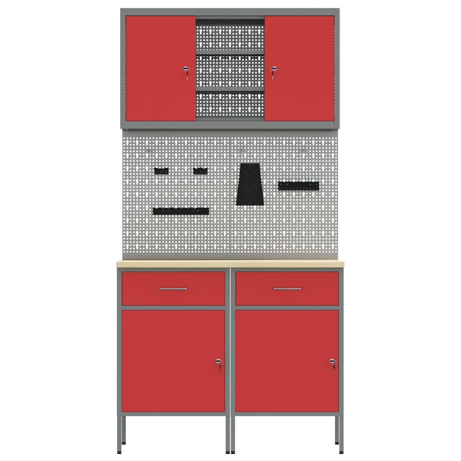 vidaXL vidaXL Set aus 5 Rot, Grau Stahl, 25mm Holzwerkstoff Groß