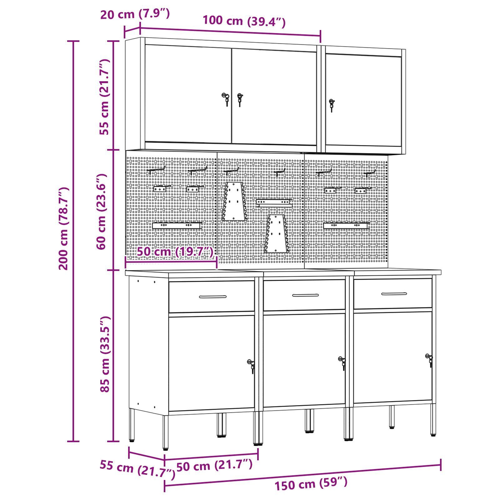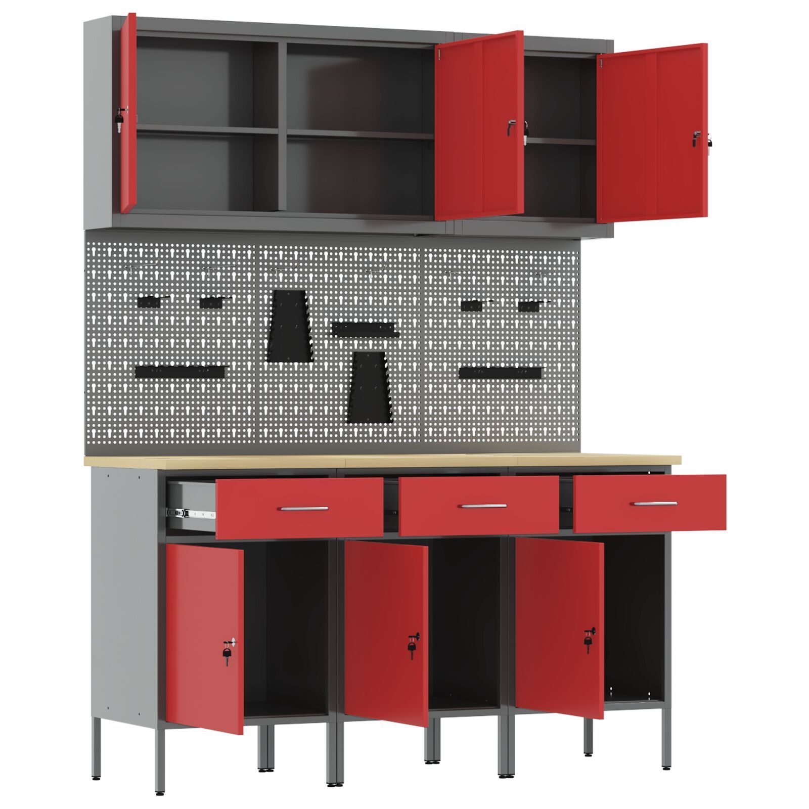 vidaXL vidaXL Set aus 6 Rot, Grau Stahl, 25 mm Holzwerkstoff Mittel
