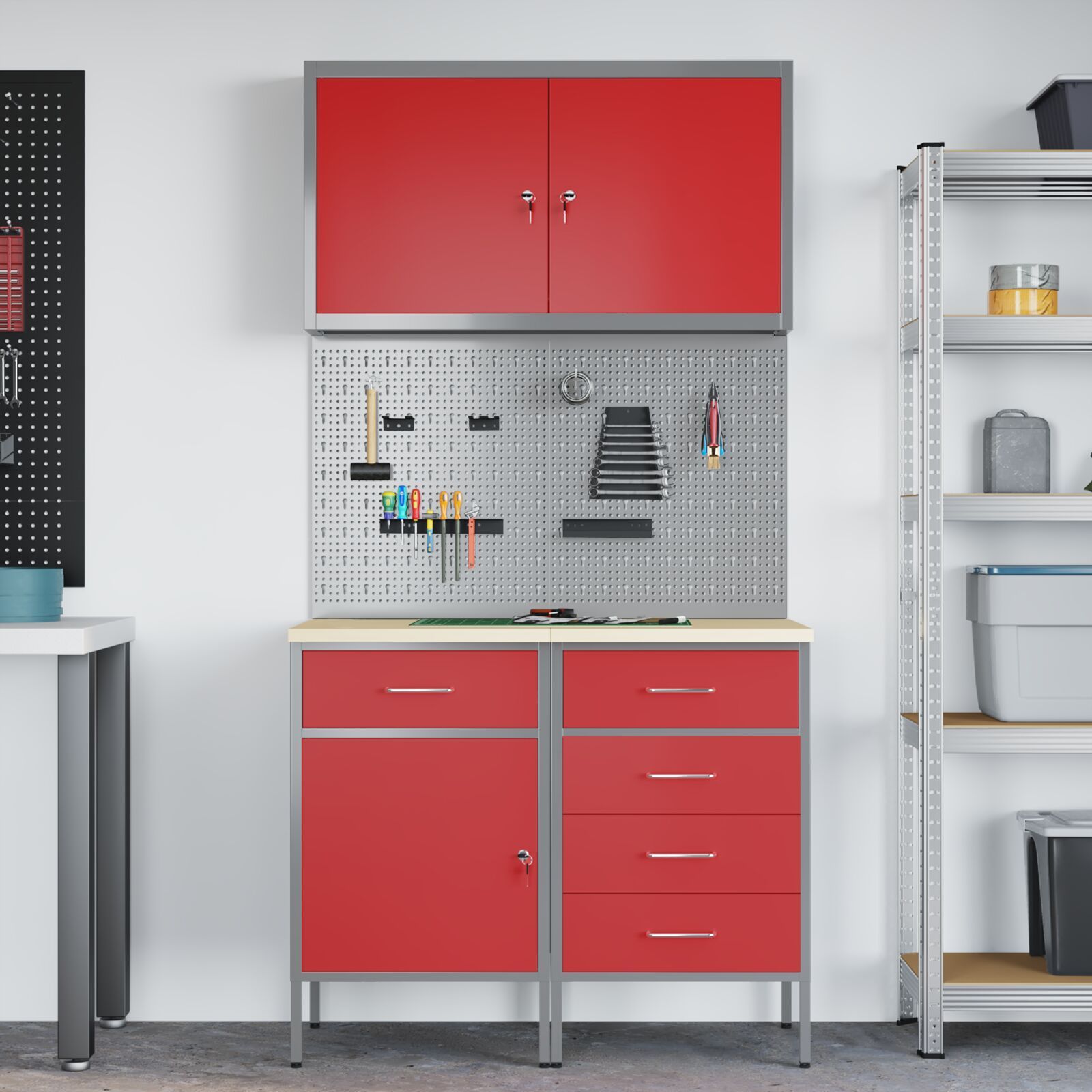 vidaXL vidaXL Set von 4 Rot Stahl Mittel Höhenverstellbar Werkstatt-Schrank