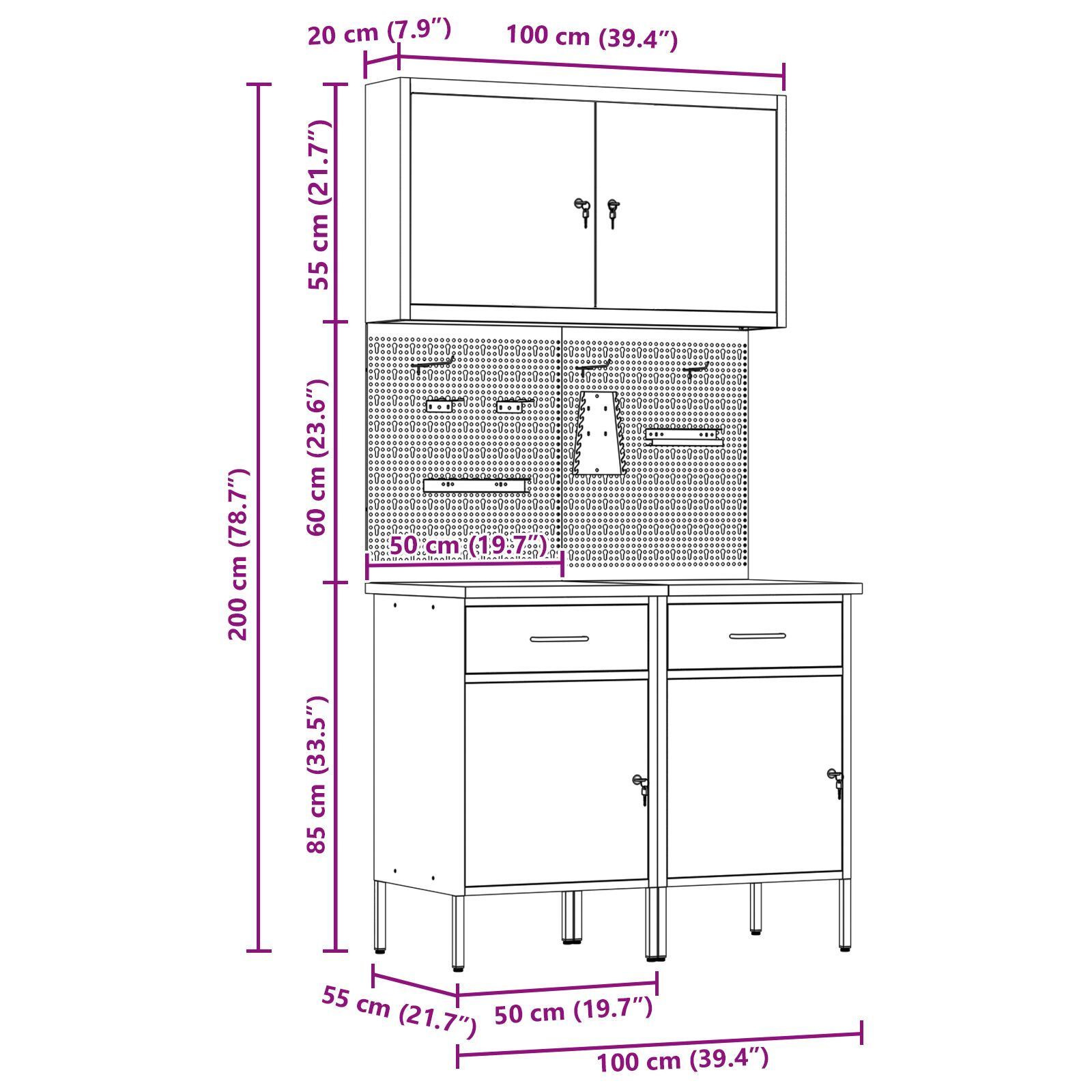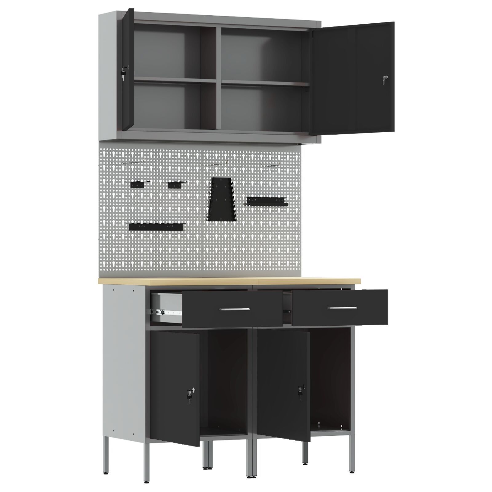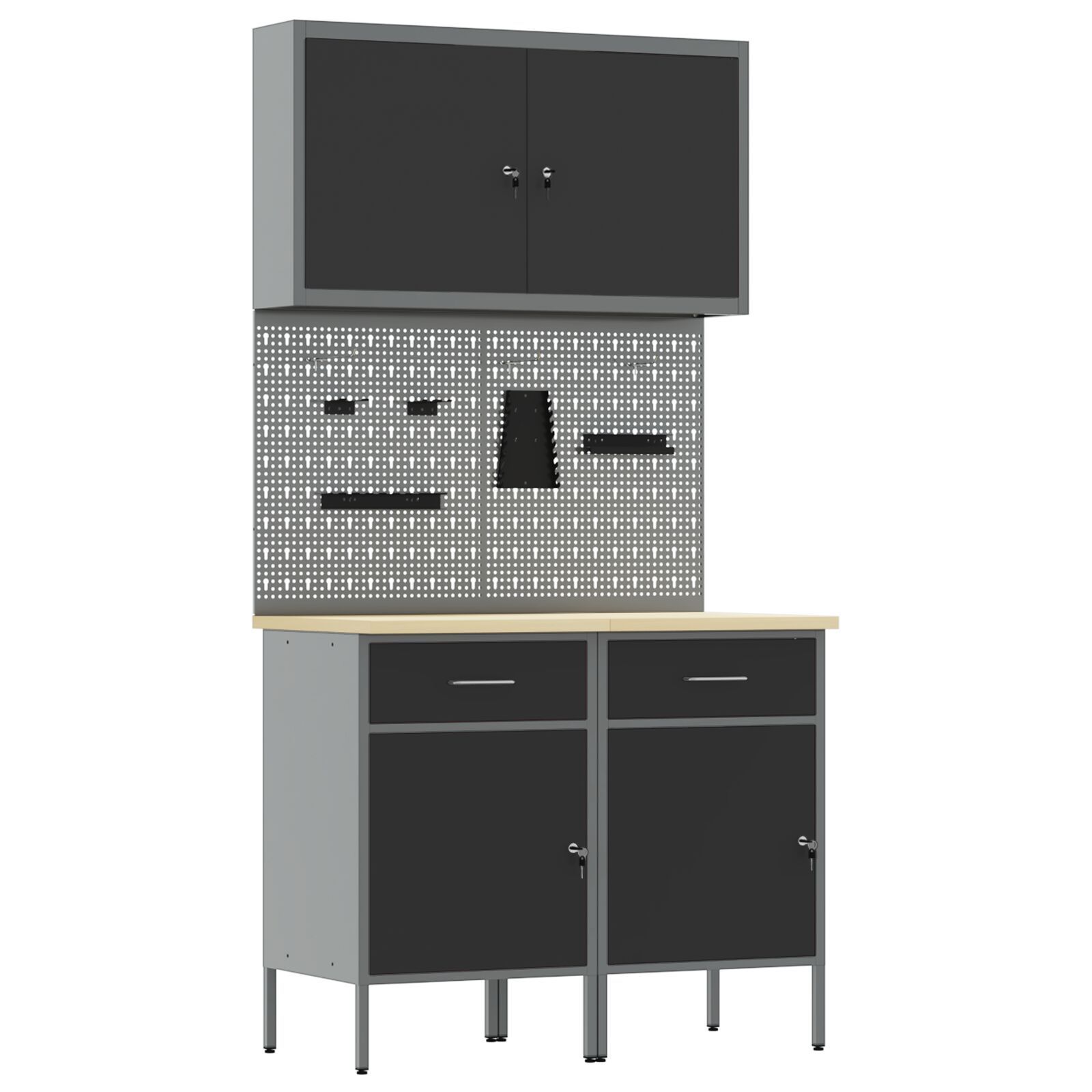 vidaXL vidaXL Set von 4 Schwarz, Grau Stahl, Ingenieurholz Mittel
