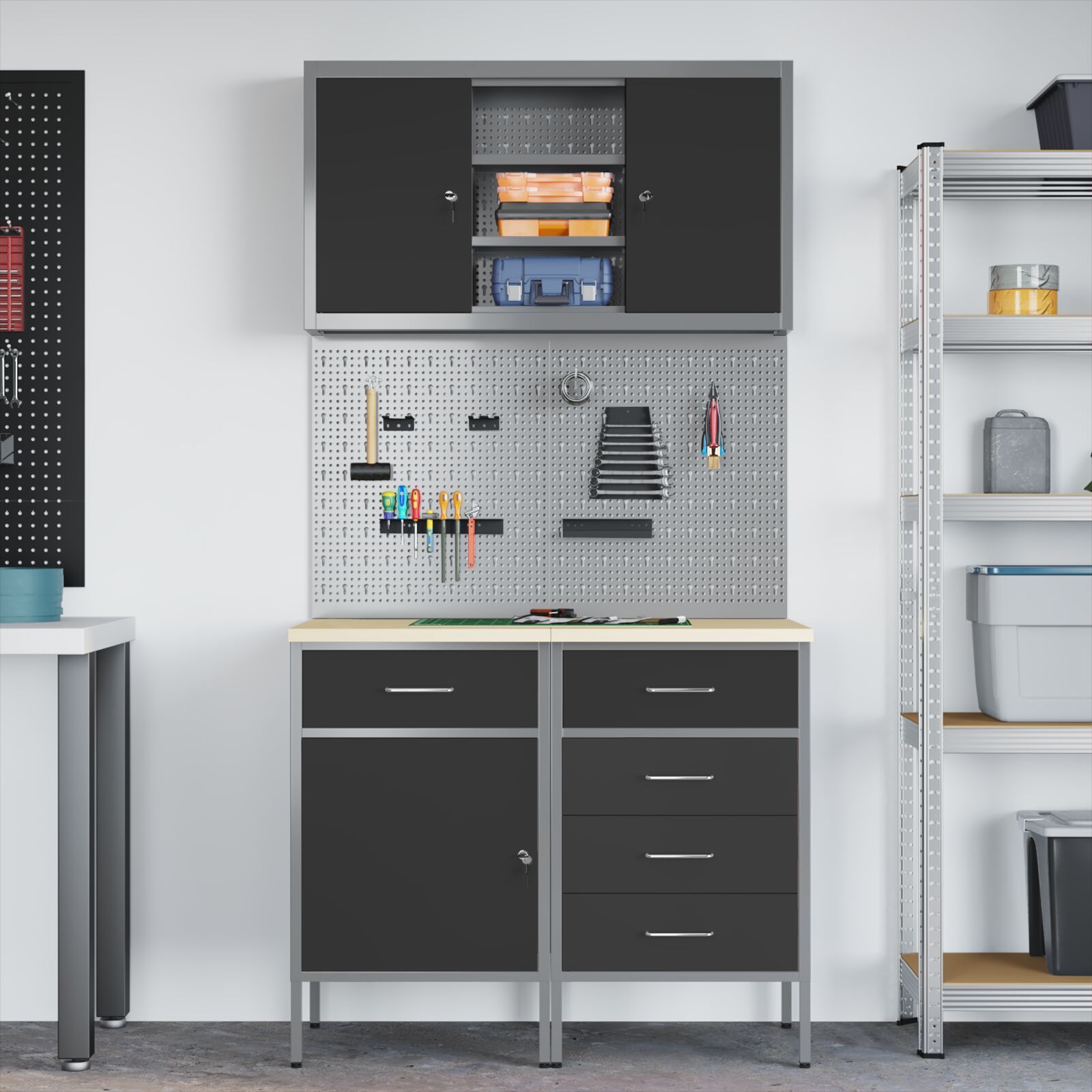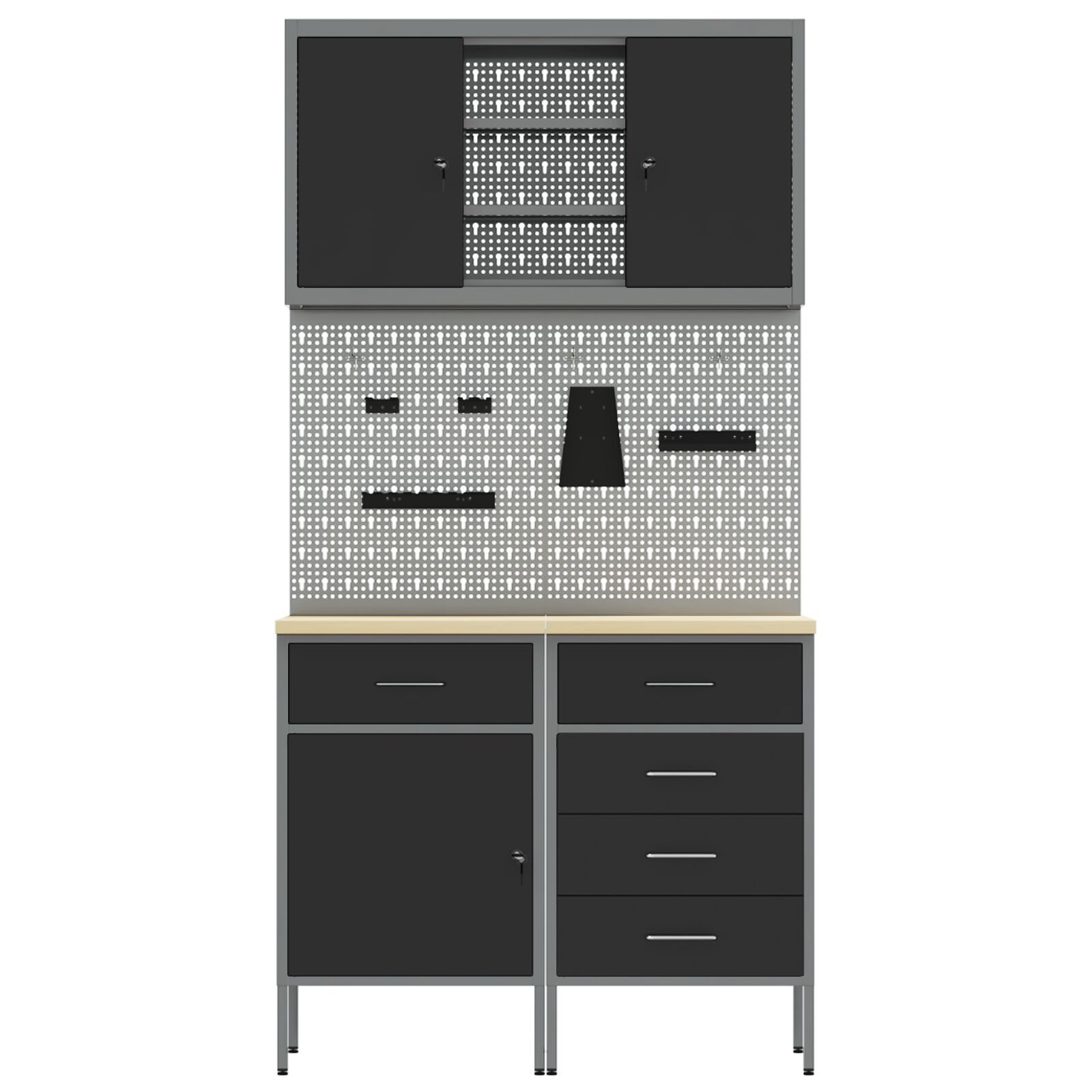 vidaXL vidaXL Set von 4 Schwarz Stahl Mittel Höhenverstellbar