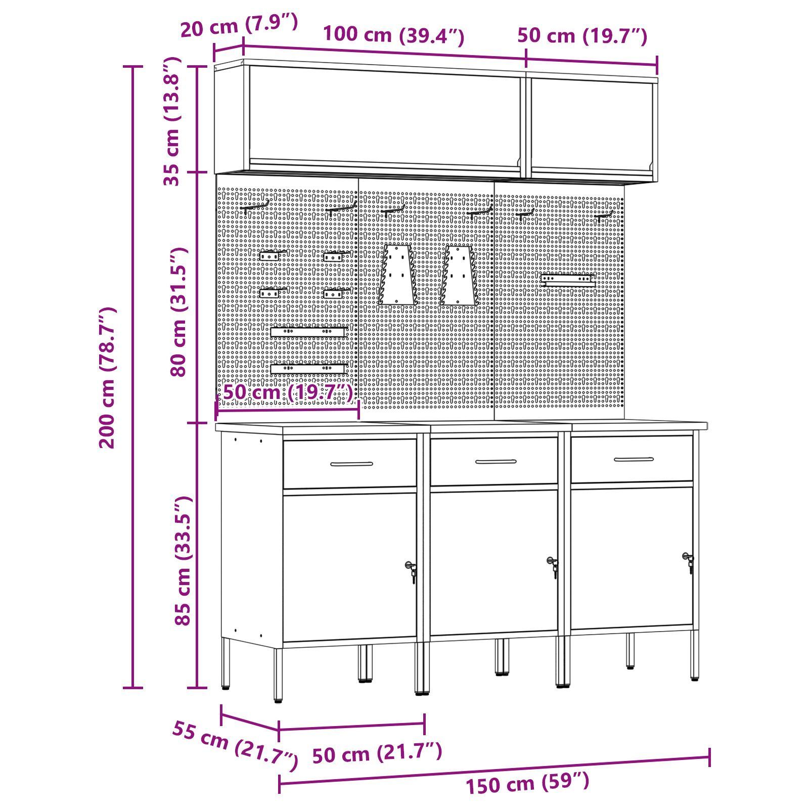 vidaXL vidaXL Set von 6 Schwarz Stahl Groß Verstellbare Füße Werkbank