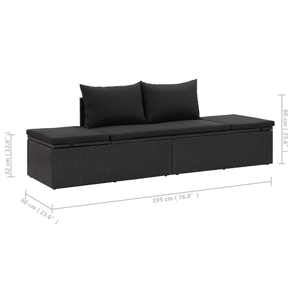 • vidaXL Sonnenliege mit Auflage Poly Rattan Schwarz
