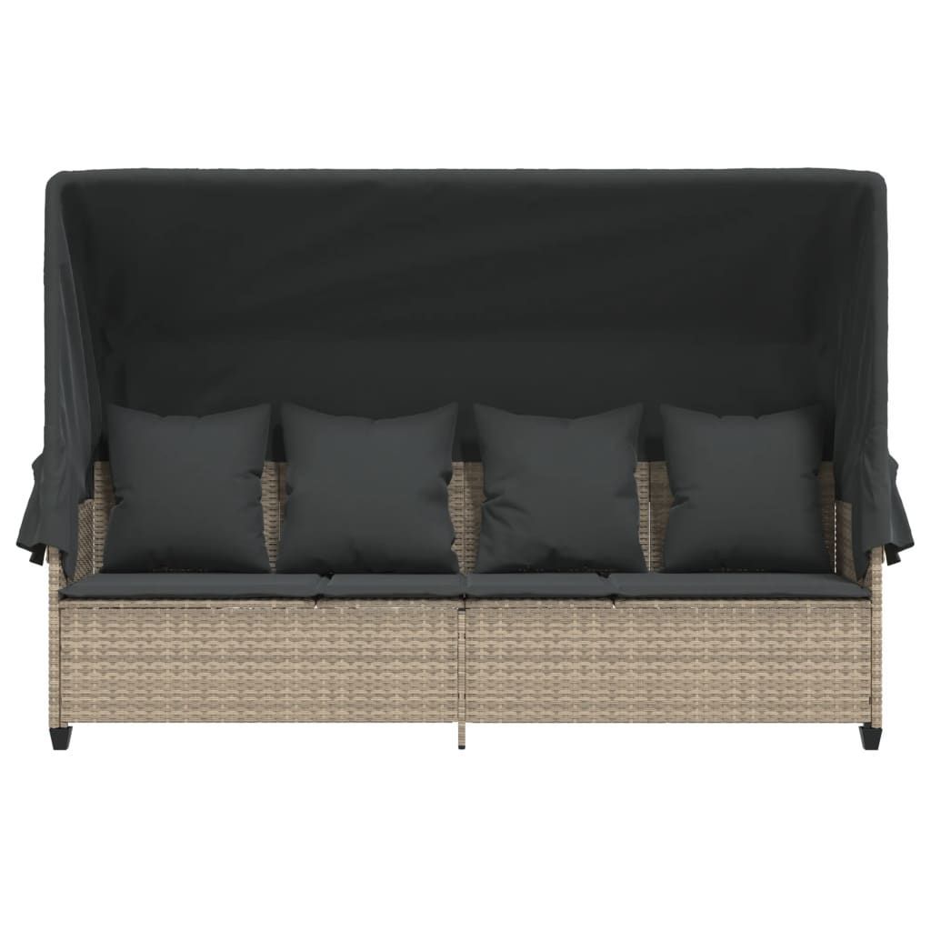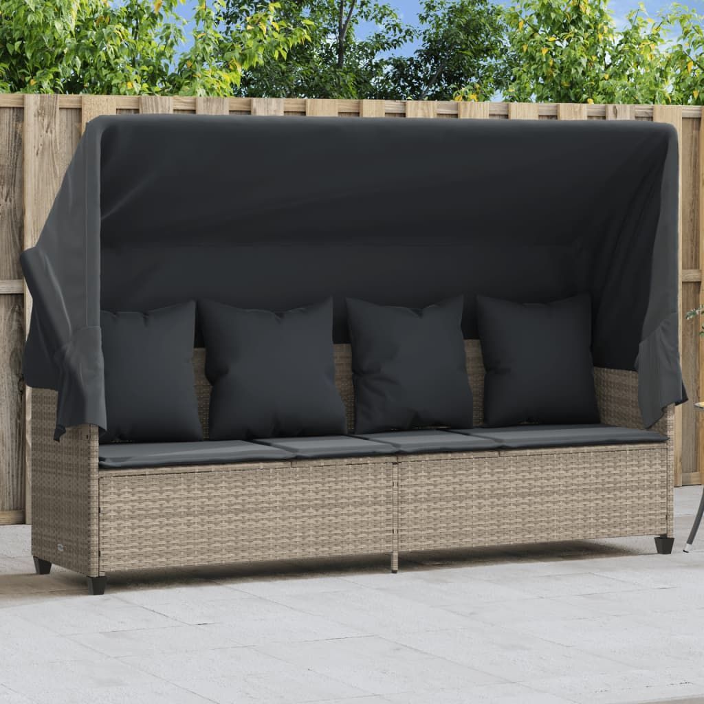 vidaXL vidaXL Sonnenliege mit Dach und Kissen Hellgrau Poly Rattan