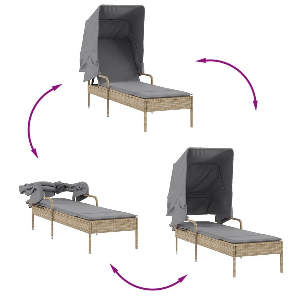 vidaXL vidaXL Sonnenliege mit Dach und Tisch Beige Poly Rattan