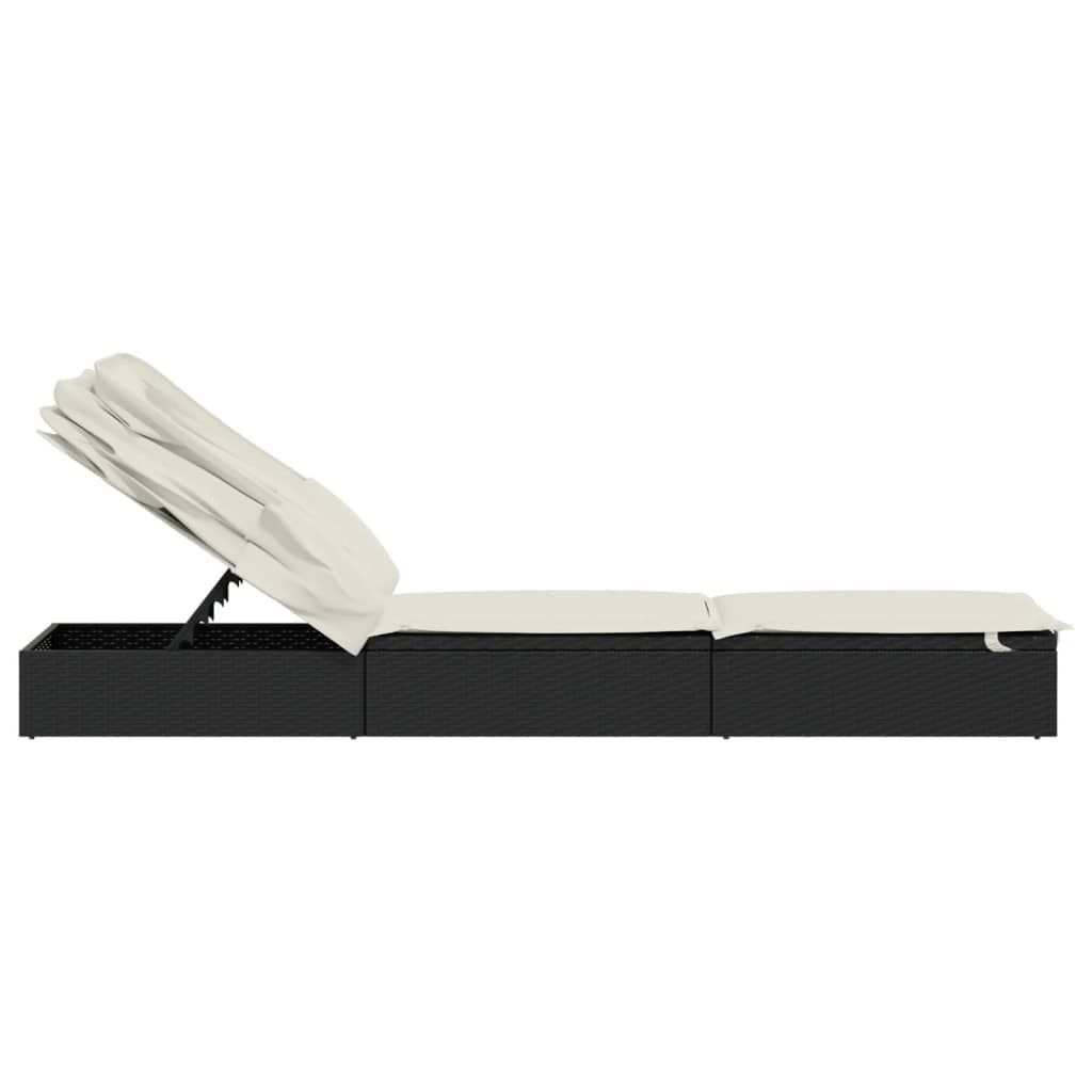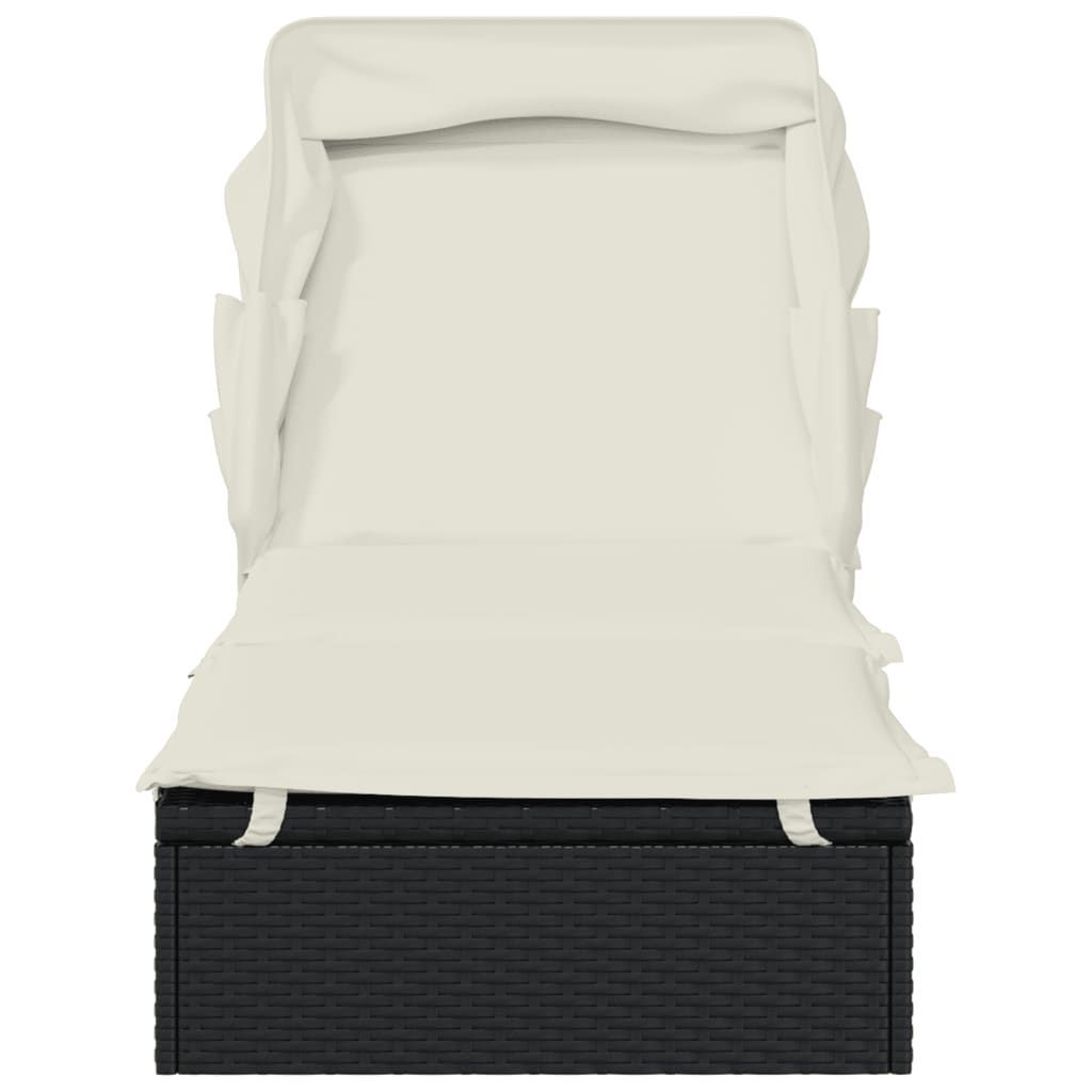 vidaXL vidaXL Sonnenliege mit Faltdach Schwarz 213x63x97 cm Poly Rattan