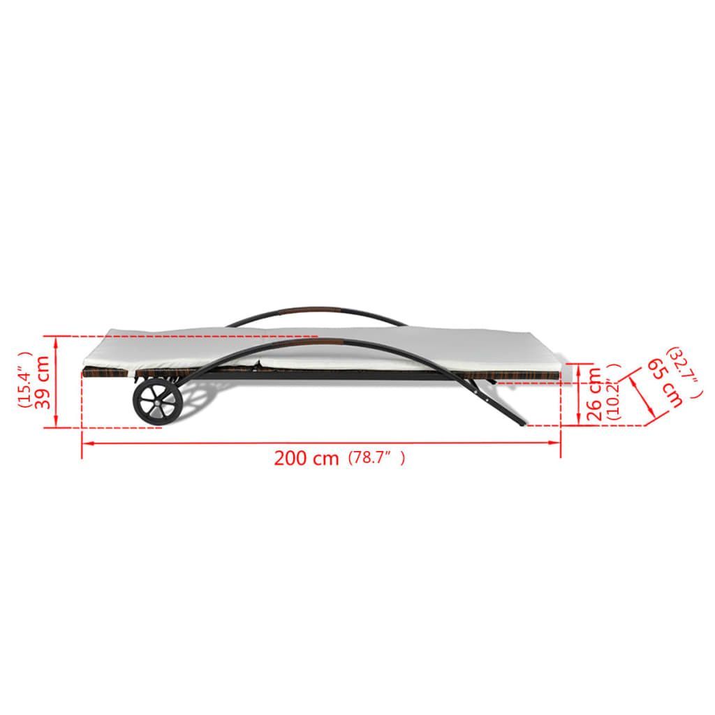 • vidaXL Sonnenliege mit Polster & Rollen Poly Rattan Braun