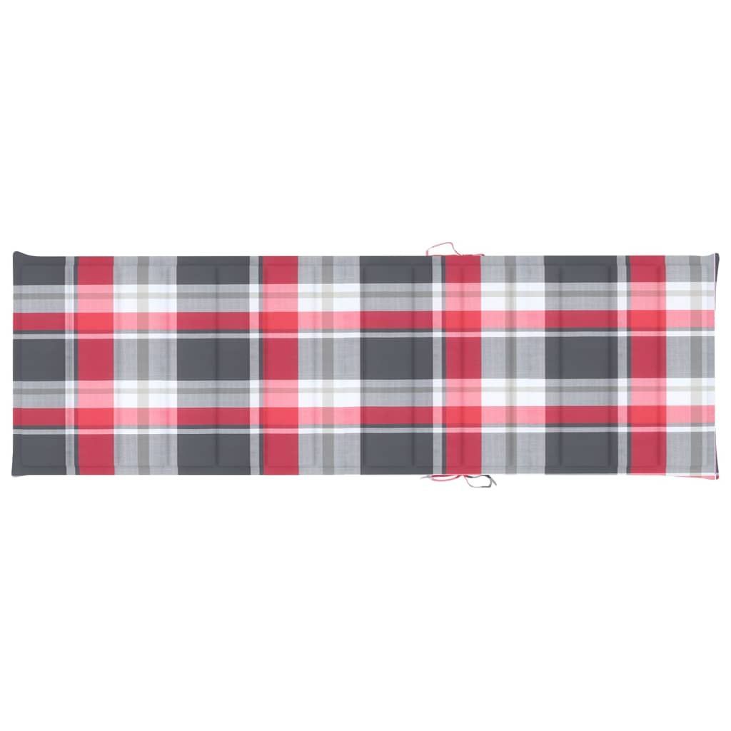 • vidaXL Sonnenliege mit Auflage Rotes Karomuster Massivholz Teak
