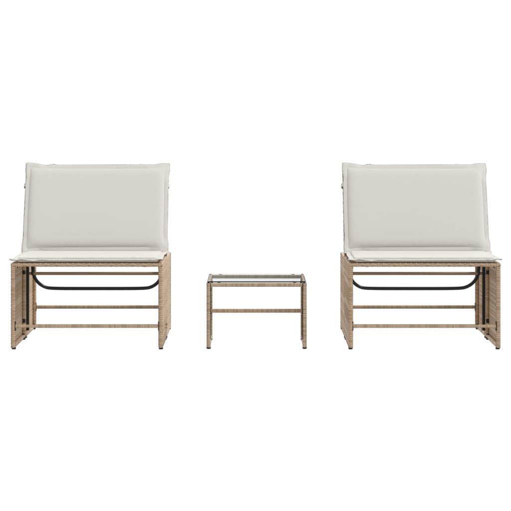 vidaXL vidaXL Sonnenliegen 2 Stk. mit Tisch Beige Poly Rattan