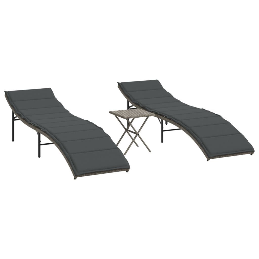 vidaXL vidaXL Sonnenliegen 2 Stk. mit Tisch Grau Poly Rattan