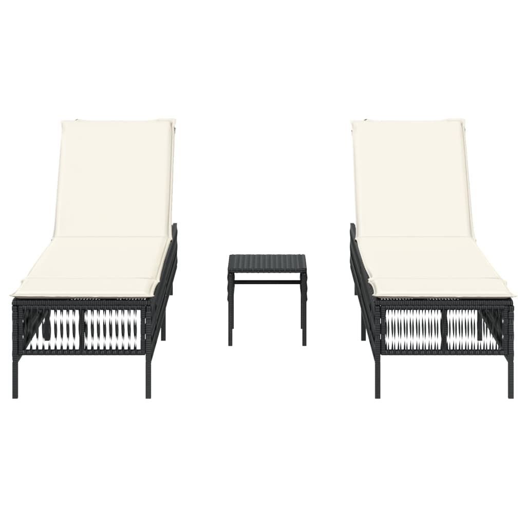 vidaXL vidaXL Sonnenliegen 2 Stk. mit Tisch Schwarz Poly Rattan
