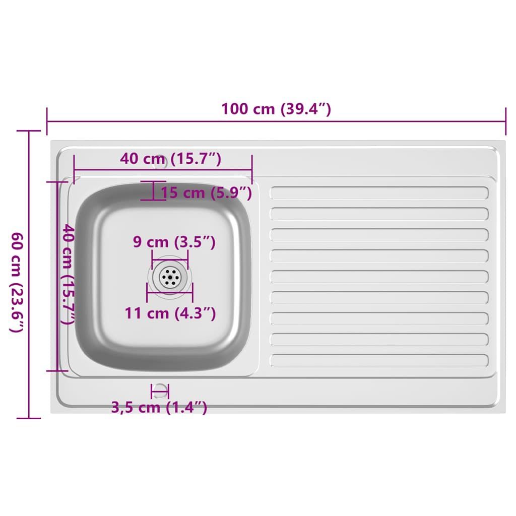 vidaXL vidaXL Spüle mit Abtropffläche Set Silbern 1000x600x155 mm Edelstahl