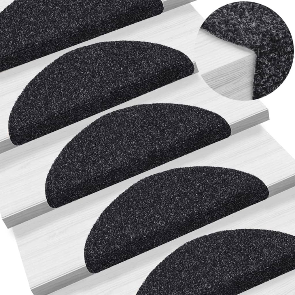 vidaXL vidaXL Stufenmatten Selbstklebend 15 Stk. 56x17x3 cm Schwarz Halbrund