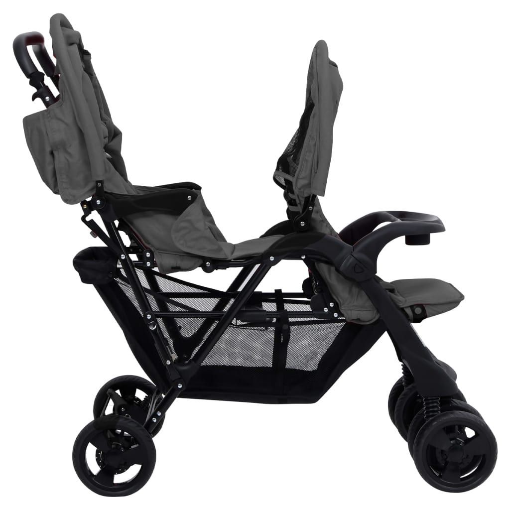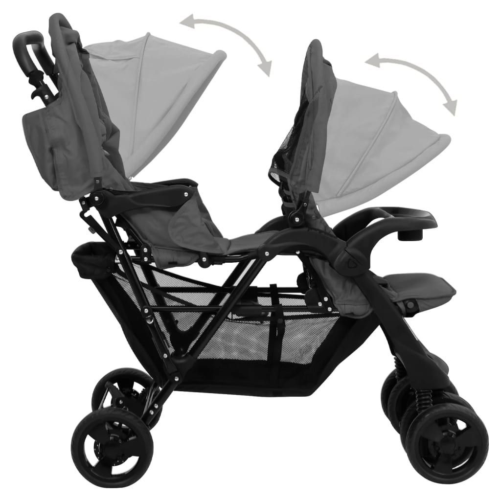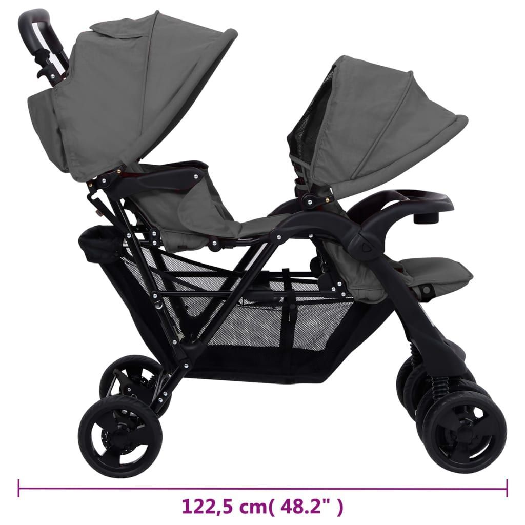 vidaXL vidaXL Tandem-Zwillingskinderwagen Dunkelgrau Stahl