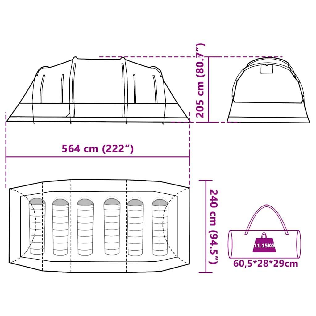 vidaXL vidaXL Tunnel-Familienzelt 6 Personen Braun Wasserdicht