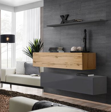 Wohnwand Wohnzimmer Schrankwand Modern Schwarz Holz Schrank Wand Regal