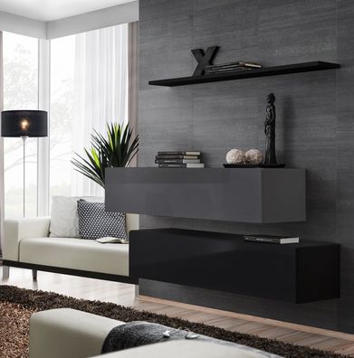 Wohn Zimmer Schwarz Wohnwand Designer Schränke Set Wandregal Modern Neu Möbel