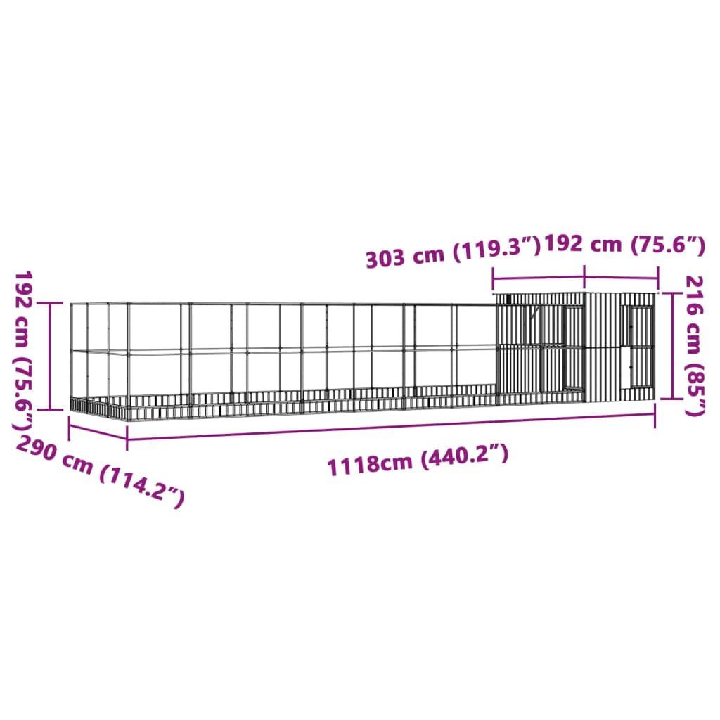 vidaXL vidaXL Voliere mit Erweiterung Silbern 1118x303x216 cm Stahl