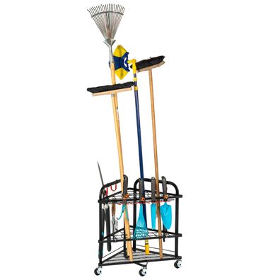 eluno Gartengeräte-Organizer, Eckregal mit extra Haken, aus schwarzem Stahl