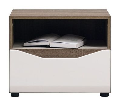• Nachttisch LIONEL LI13 Nachtschrank mit Schublade Sonoma Trüffel/ Weiß Glanz