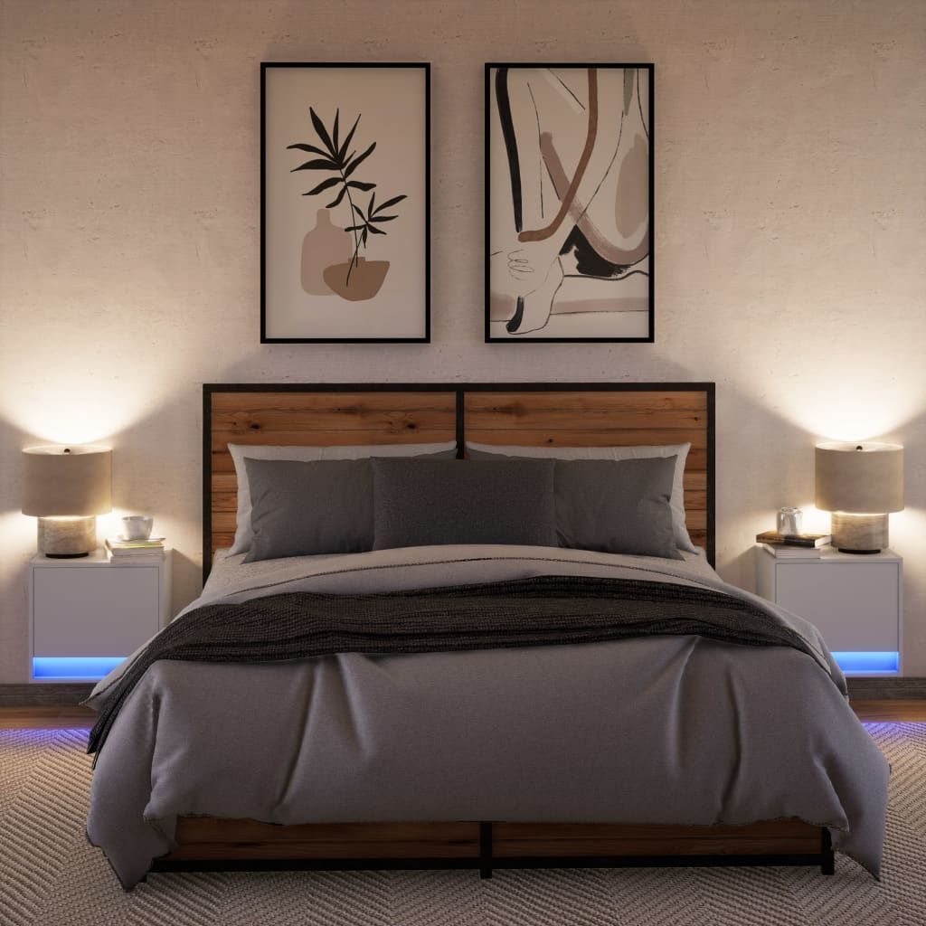 vidaXL vidaXL Wand-Nachttische mit LED-Leuchten 2 Stk. Weiß