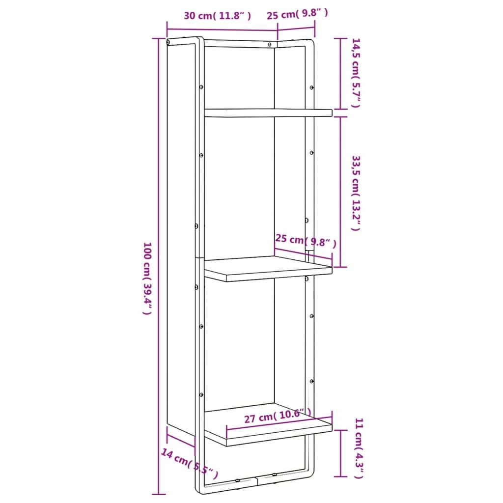 vidaXL vidaXL Wandregal 3 Fächer Grau Sonoma 30x25x100 cm Holzwerkstoff