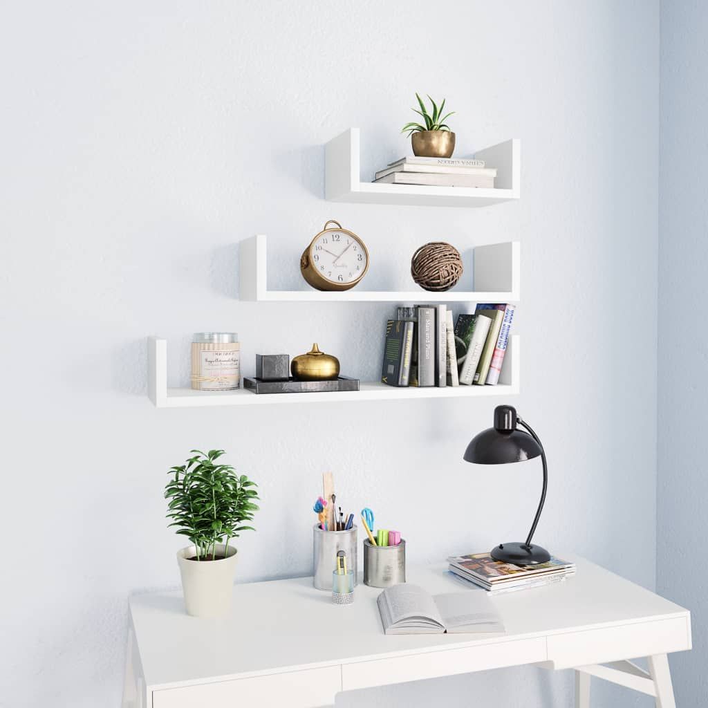 vidaXL vidaXL Wandregal 3 Stk. Weiß Holzwerkstoff
