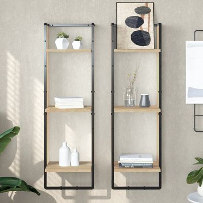 • vidaXL Wandregale mit 3 Ablagen & Stangen 2 Stk. Sonoma Eiche