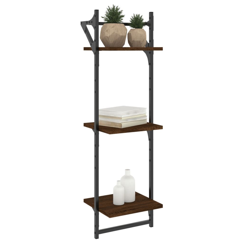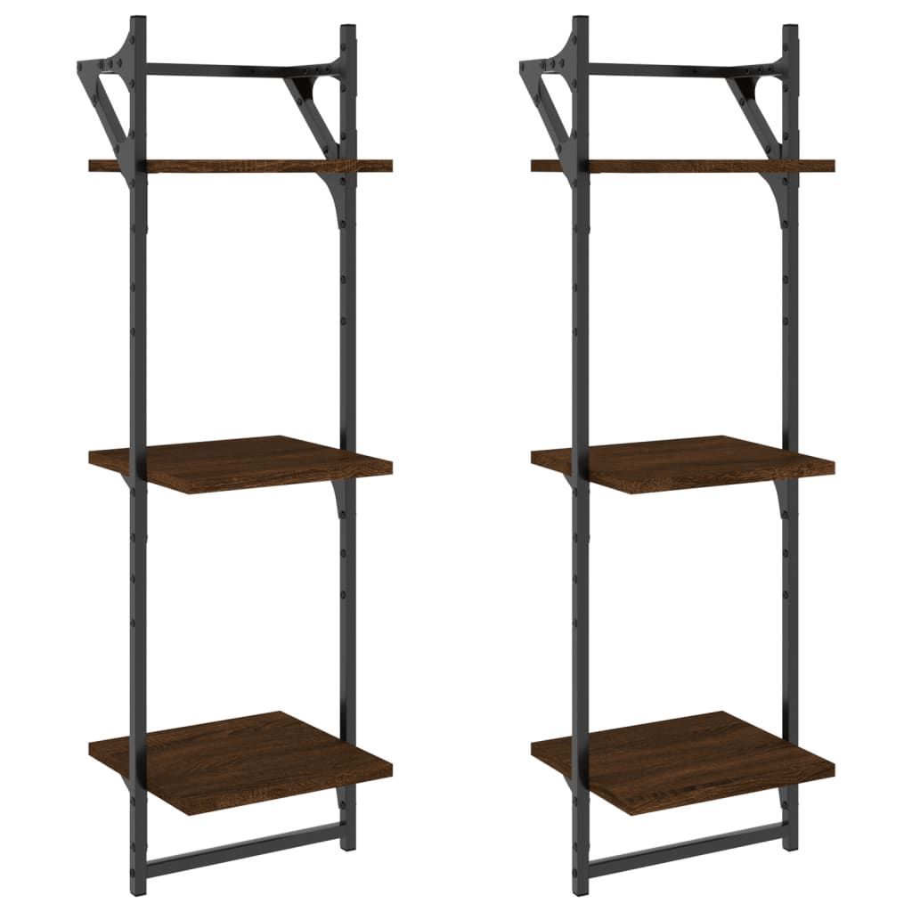 vidaXL vidaXL Wandregale mit 3 Ablagen & Stangen 2 Stk. Braun Eichen-Optik