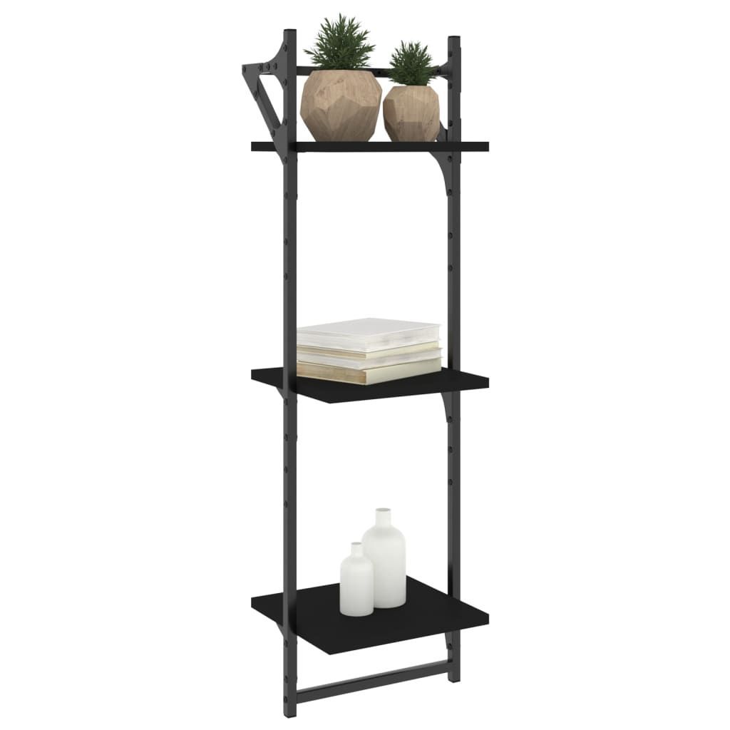 vidaXL vidaXL Wandregale mit 3 Ablagen & Stangen 2 Stk. Schwarz 30x25x100 cm