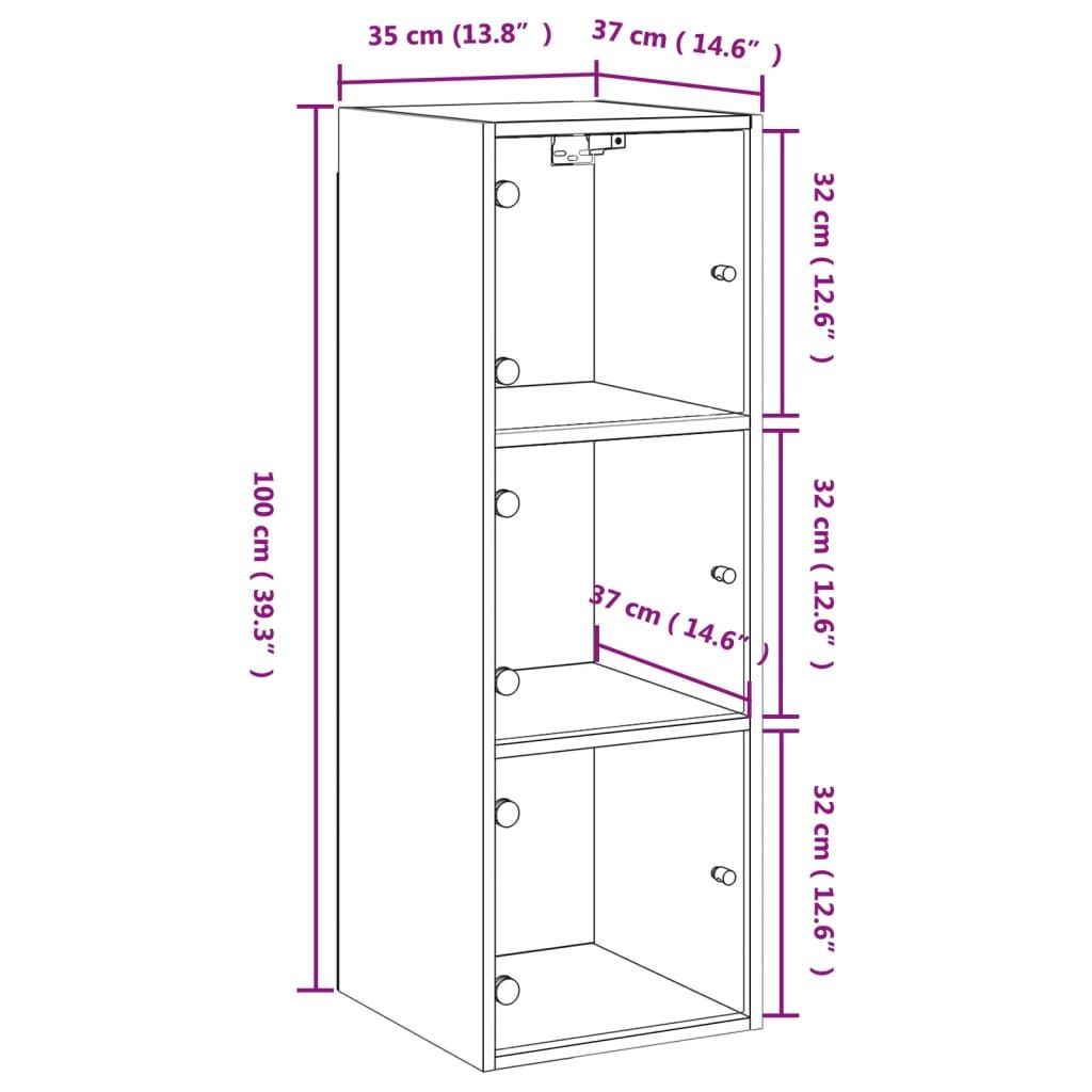vidaXL vidaXL Wandschrank mit Glastüren Sonoma-Eiche 35x37x100 cm