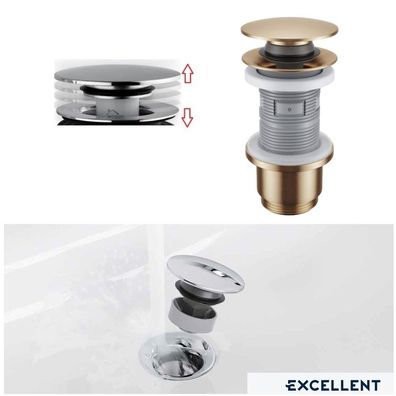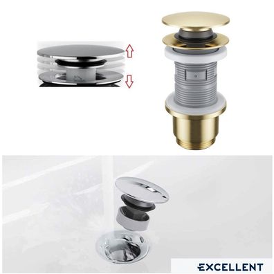 Click Clack Ablaufventil Gold gebürstet Waschbecken mit/ohne Überlauf Messing 63 mm