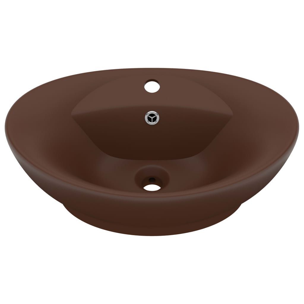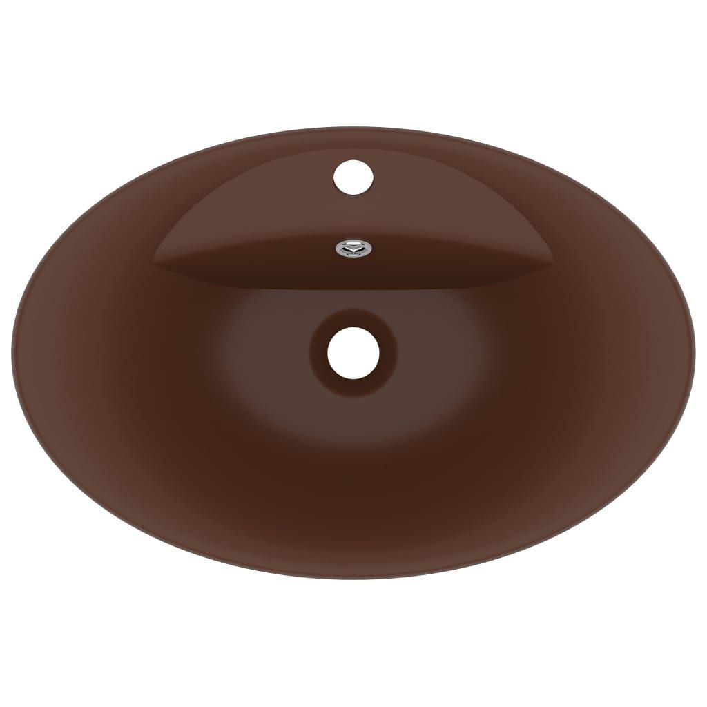 vidaXL vidaXL Waschbecken Überlauf Oval Matt Dunkelbraun 58,5x39cm Keramik