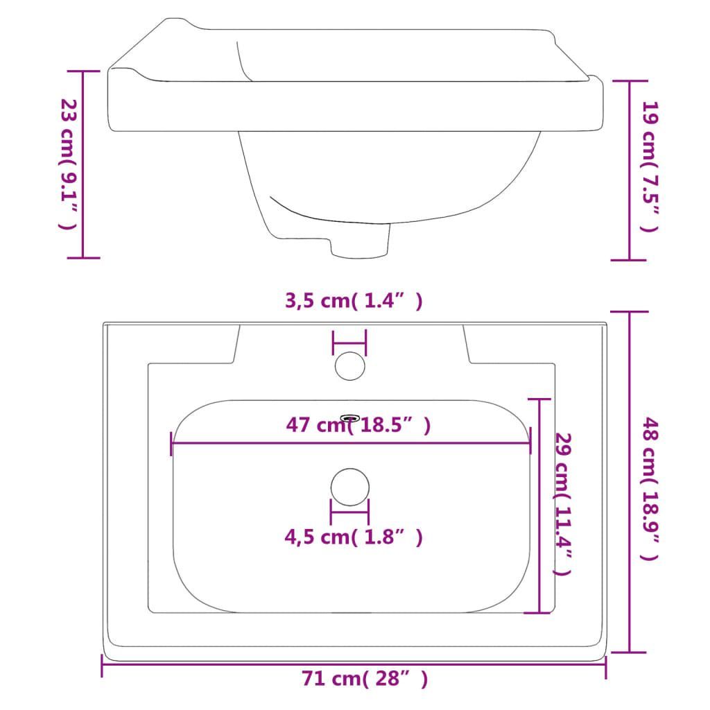 vidaXL vidaXL Waschbecken Weiß 71x48x23 cm Rechteckig Keramik