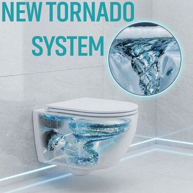 • WC Virvel - Tornado-Spülsystem Wandhängende Toilette aus Keramik in Weiß